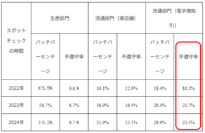 前述の通り、中国政府が2024年に公表した製品品質検査の結果によると、147種類を対象とした調査で、全体の不合格率は14.3%でした。しかし、この数字は下表の通り販売経路によって大きく異なることが明らかになっています。