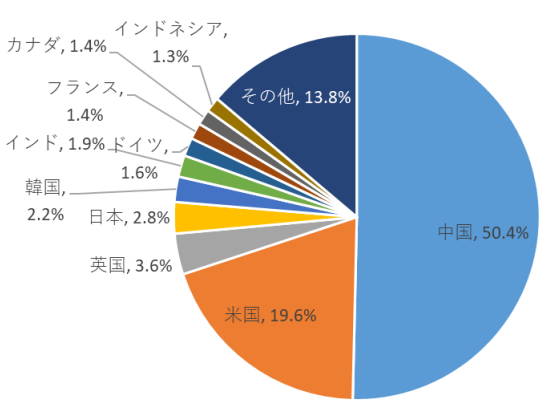 1位中国と2位アメリカの市場占有率が圧倒的なので、上位2カ国については今後もしばらくは揺るがないでしょうが、イギリス以下の市場についてはシェア率にそれほど大きな差はなく、近い将来の順位変動も考えられます。