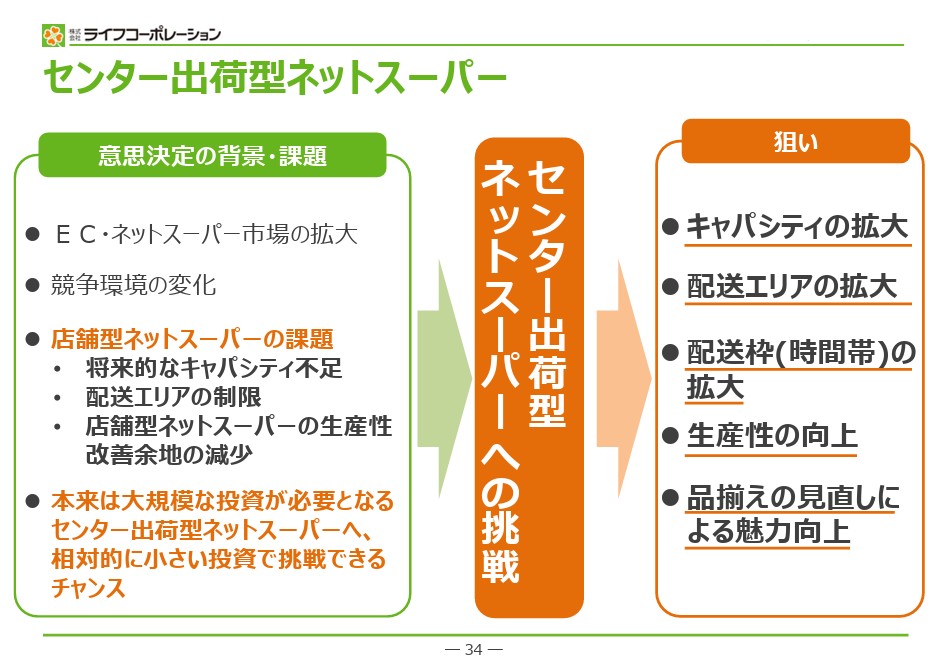 2027年にセンター出荷型ネットスーパーを開始予定
