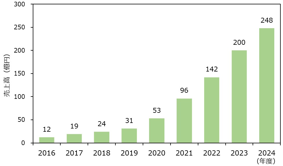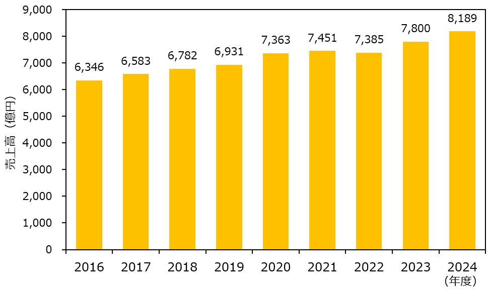 売上高は、コロナ禍初年に当たる2020年度に7,000億円を超え、4期後の2024年度には8,000億円に達するなど、順調に成長していることがわかります。
