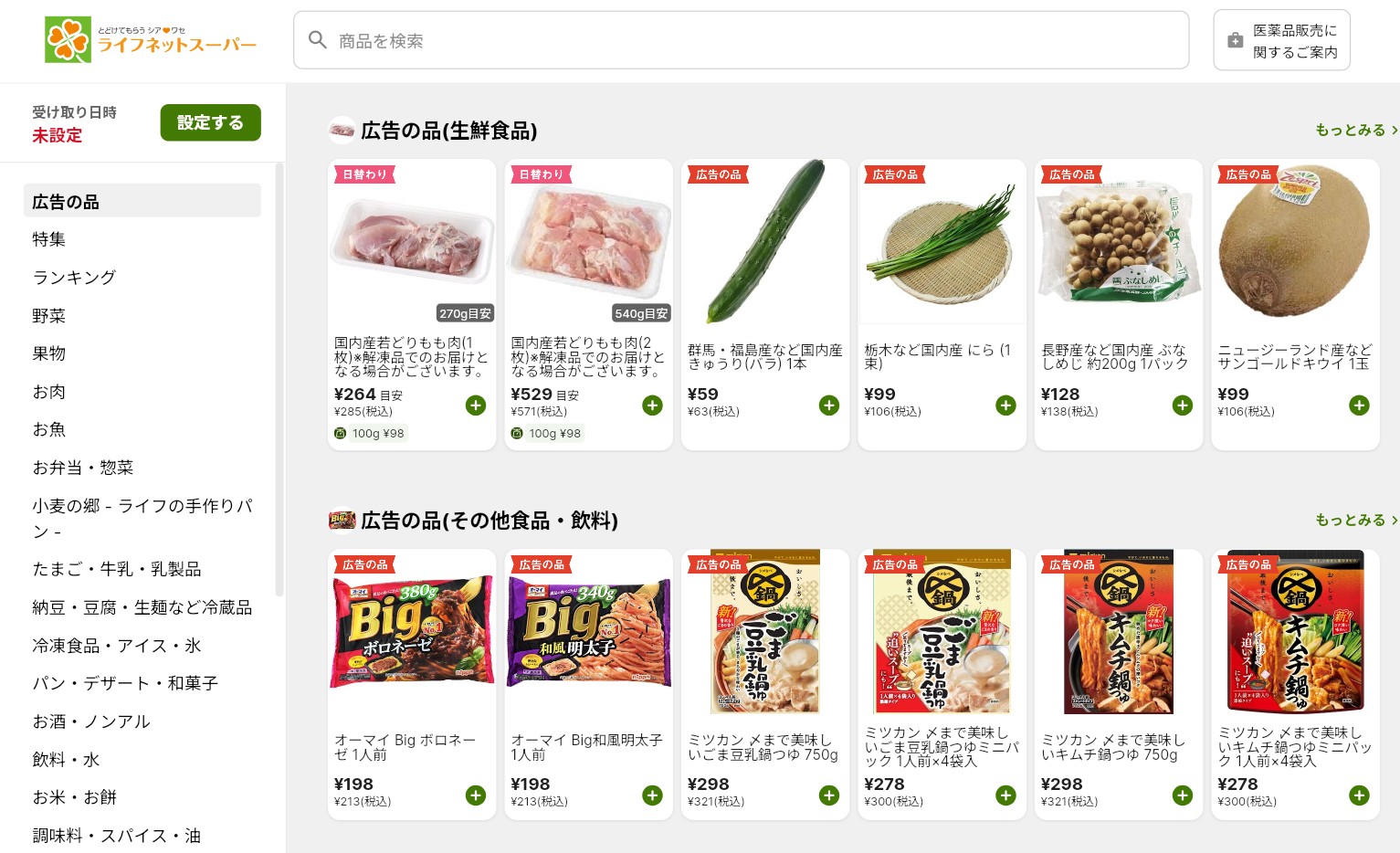 ◆ライフネットスーパーのトップページ(PC版)