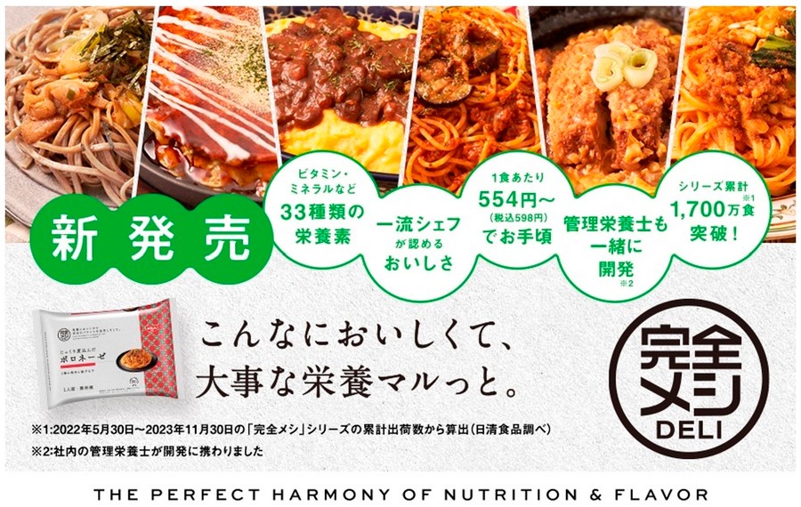 現代の健康課題の解決を目指して誕生した「完全メシ」ブランドは、2022年5月の発売開始から約3年後の2025年4月時点で、シリーズ全体で約60カテゴリー・200以上のメニューを展開しており、シリーズ累計出荷数は5,000万食を突破、ブランド認知率は50%を超えています。