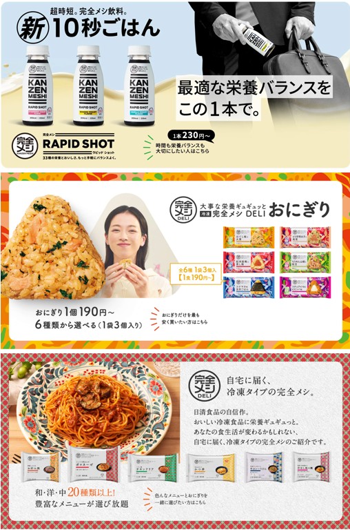 ◆バラエティ豊かな「完全メシ」(2025年11月現在)