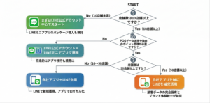 このフェーズでは、自社アプリを軸としつつ、LINEを新規顧客獲得の入口として併用する戦略が効果的です。LINEで友だちを増やし、より深い顧客体験を提供するためにアプリへの移行を促す流れを作ります。