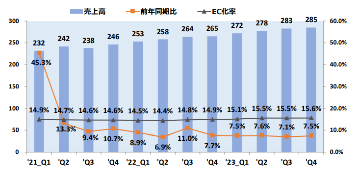 今までECを利用してこなかった消費者層も、コロナ禍を経てECを利用するようになったことで、今後も市場は堅調に推移していくと見られております。