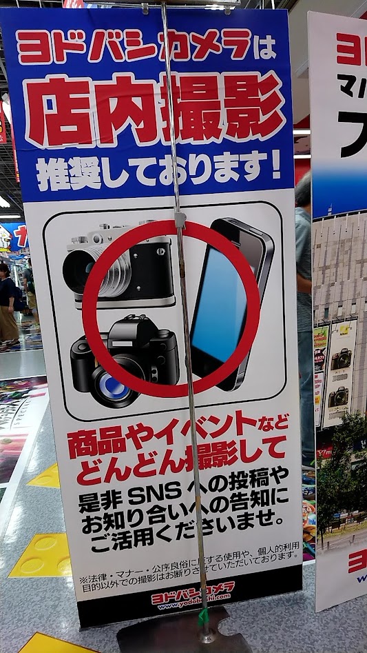 ヨドバシカメラでは、無料Wi-Fi提供開始と同時に、店内での写真撮影も解禁されました。