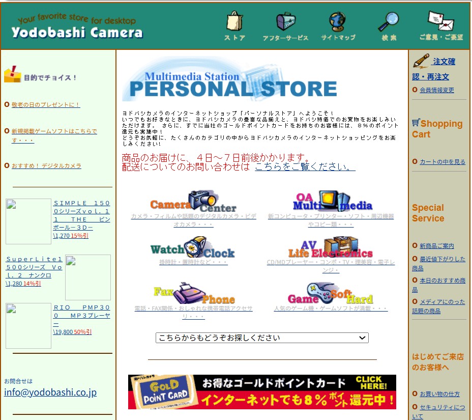 当初「PERSONAL STORE」という名称で運営されていた同社のECサイトは、2000年に「ヨドバシ・ドット・コム」となり、現在に至るまでこの名称が使用されています。